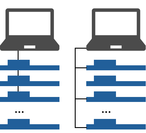 每台設備皆具備完整硬體架構: 中央處理器CPU、記憶模組、控制模組和通訊模組等。可根據需求調整使用模式。